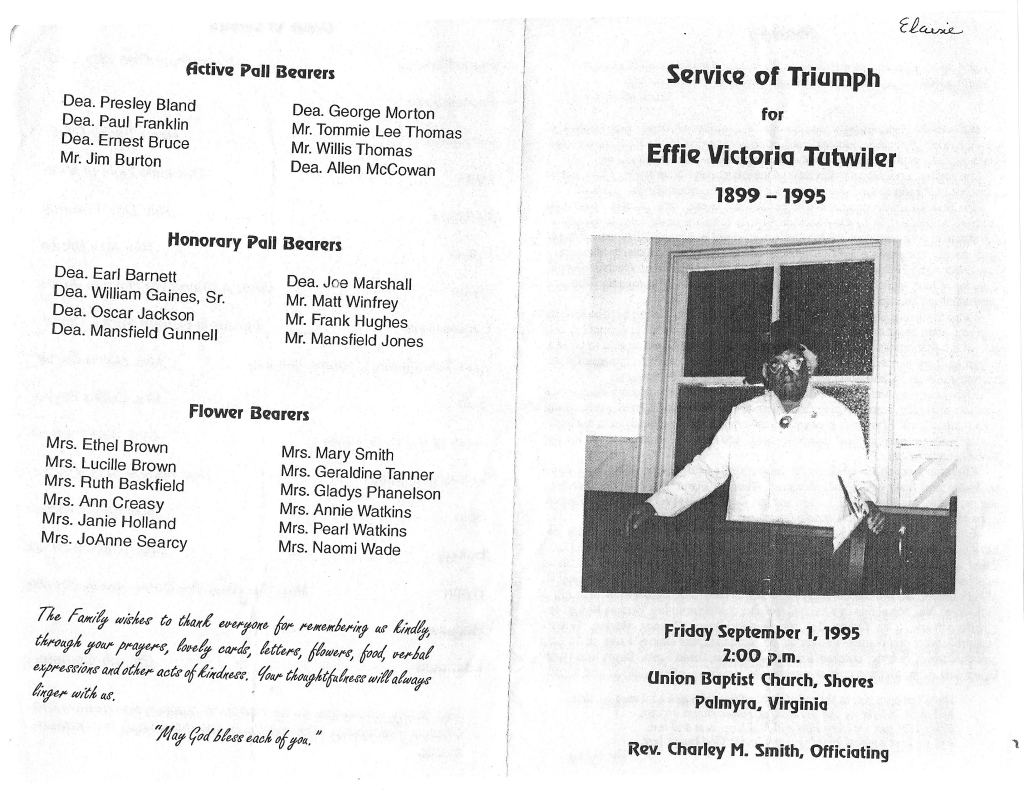 Effie Kelley Tutwiler b. September 17, 1899-d. August 25, 1995 Submit your memories here Return to home page Return to home page Share this: Click to share on X (Opens in new window) X Click to share on Facebook (Opens in new window) Facebook Like Loading...