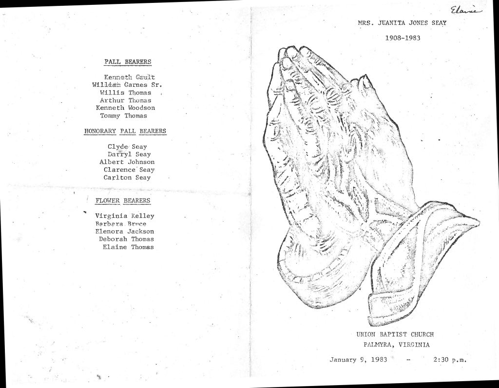 Juanita Jones Seay b. February 25, 1908 – d. January 7, 1983 Submit your memories here Return to home page Return to home page Share this: Click to share on X (Opens in new window) X Click to share on Facebook (Opens in new window) Facebook Like Loading...